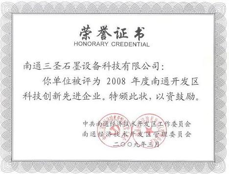 我公司被南通經(jīng)濟技術開發(fā)區(qū)評為2008年度技術創(chuàng)新先進單位